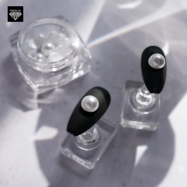 爪のカーブに沿うよう設計されたパールパーツ。 爪のカーブを包み込む様な形状で、接着面が広く しっかりとした安定感とフィット感があります。 浮きにくく、爪のカーブに自然に馴染むため、 真横から見たシルエットが綺麗に仕上がります。 フラットパールでは配置しにくい、 先端やサイドにもおすすめ。 シンプルなデザインにも取り入れやすく、 上品な印象をプラスします。 【size】 6mm(背面カーブ) 【color】 ホワイト / アイボリー 【内容】 20個入り