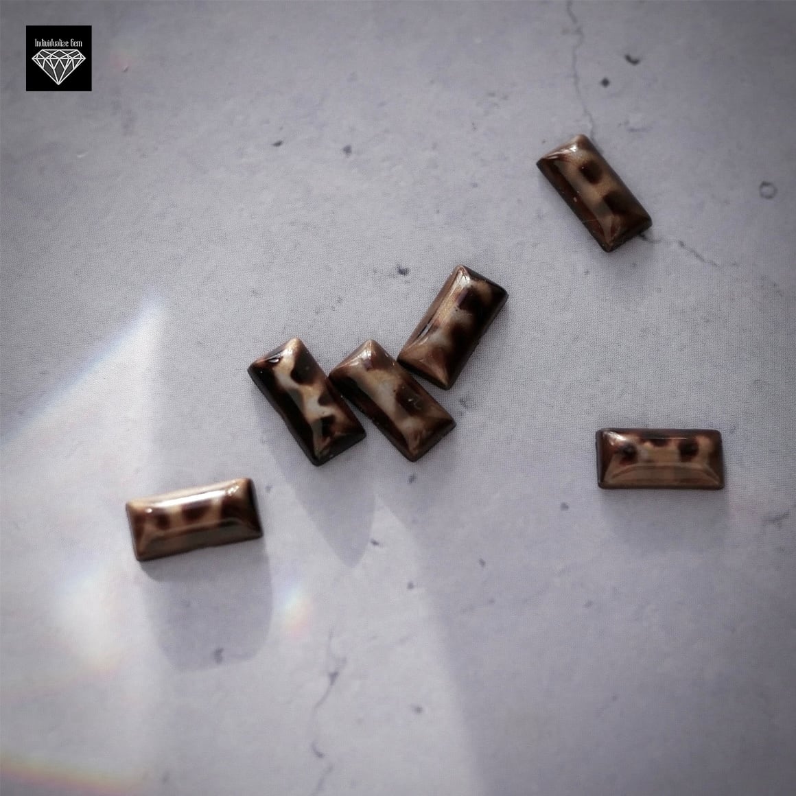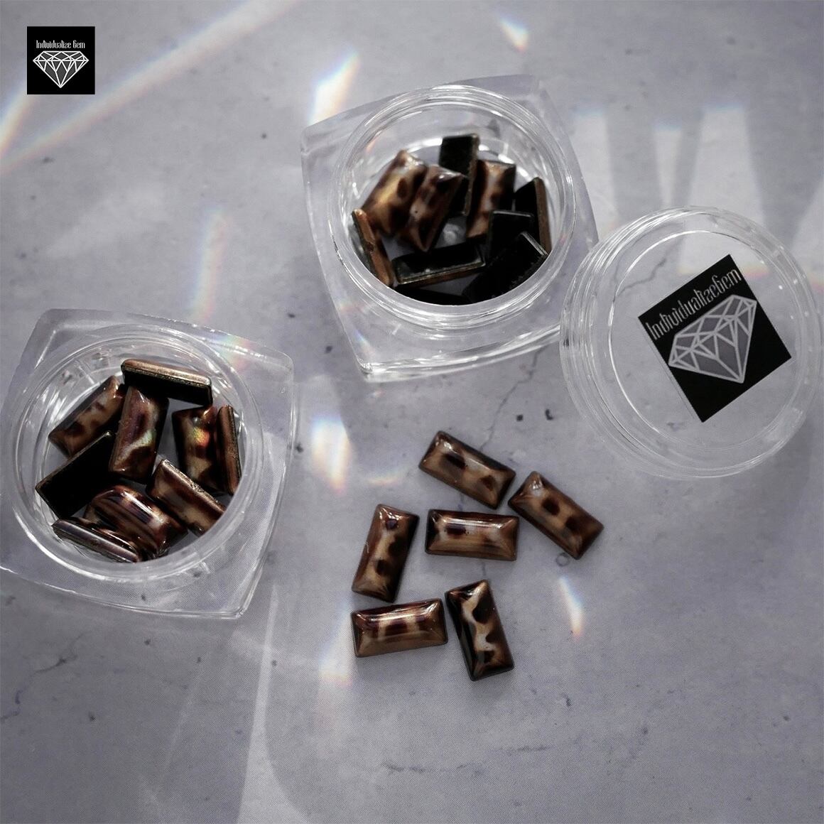 透け感のあるブラウンに、ヒョウ柄のようなニュアンス模様が美しいレクタングルパーツ。