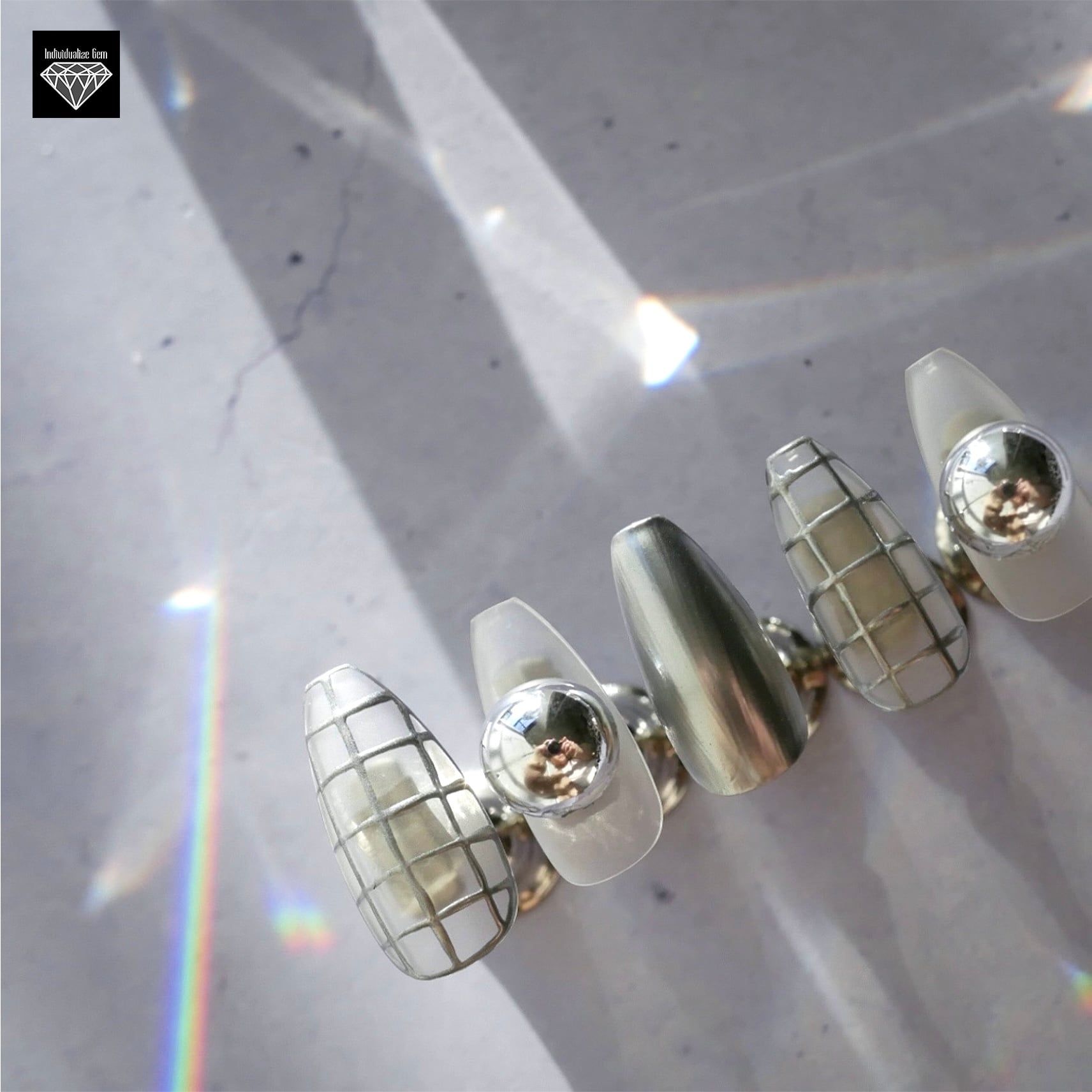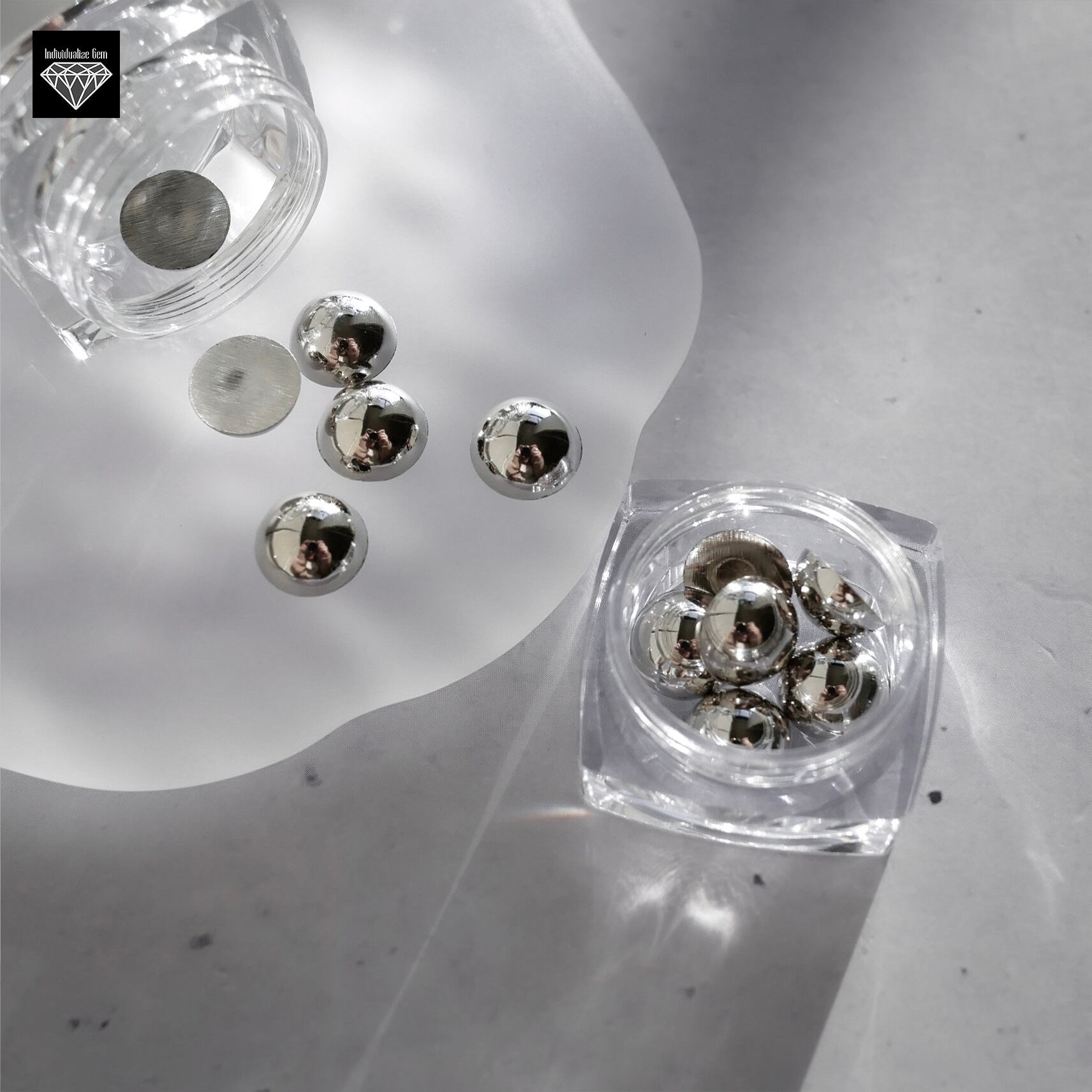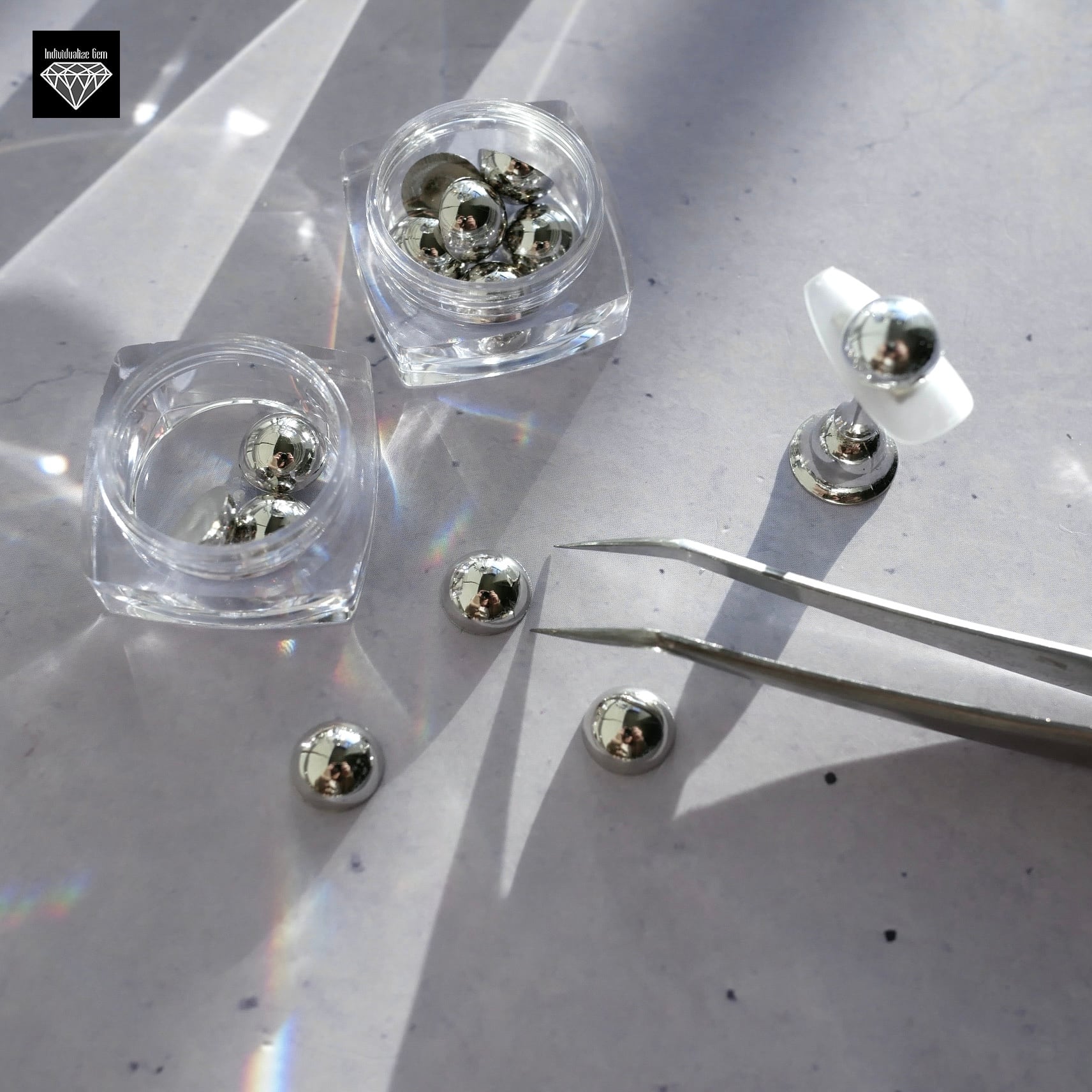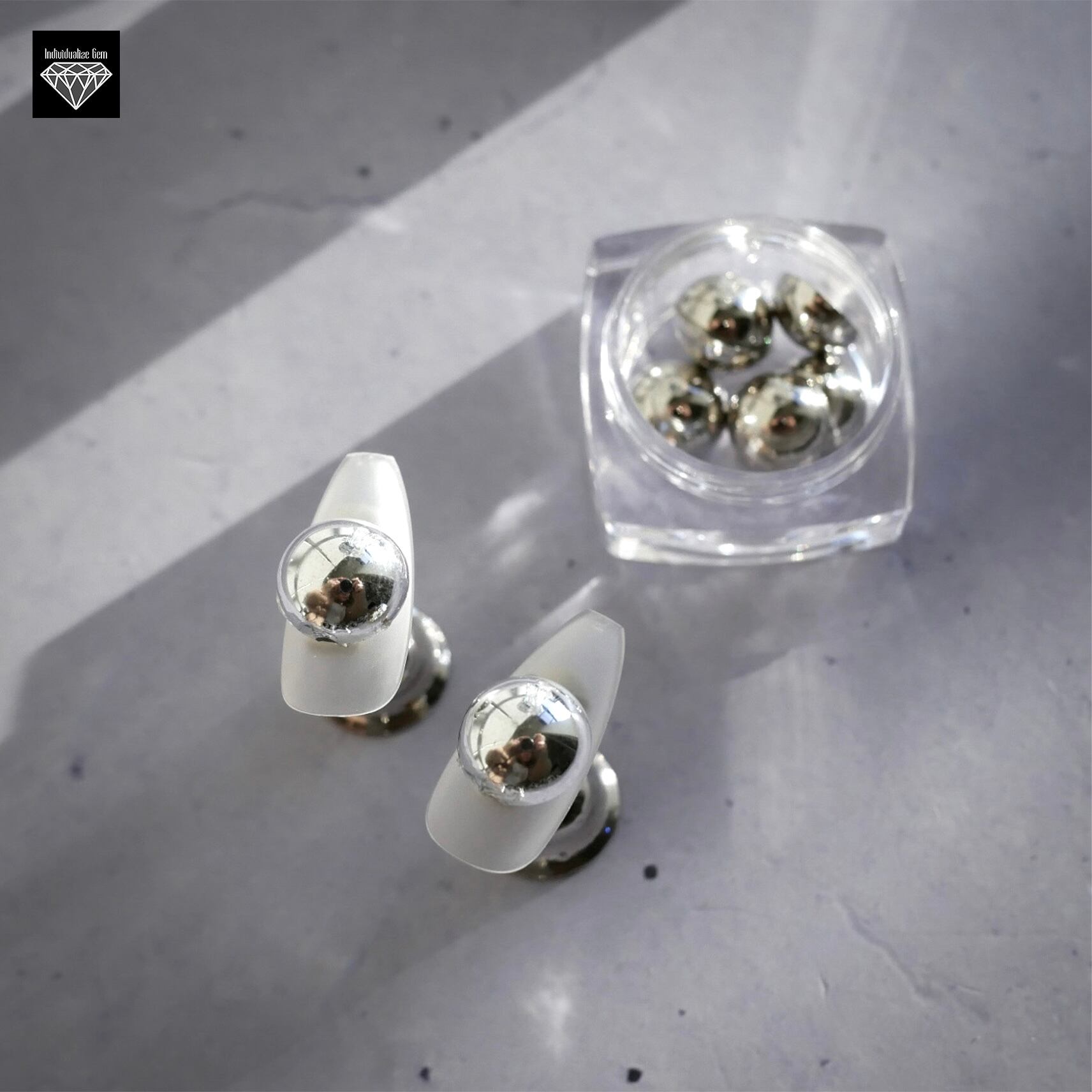 底面がフラットな半球になっているので、パーツが動きづらく、装着後の引っかかりも少ないので、ネイル初心者さんにもオススメです!
